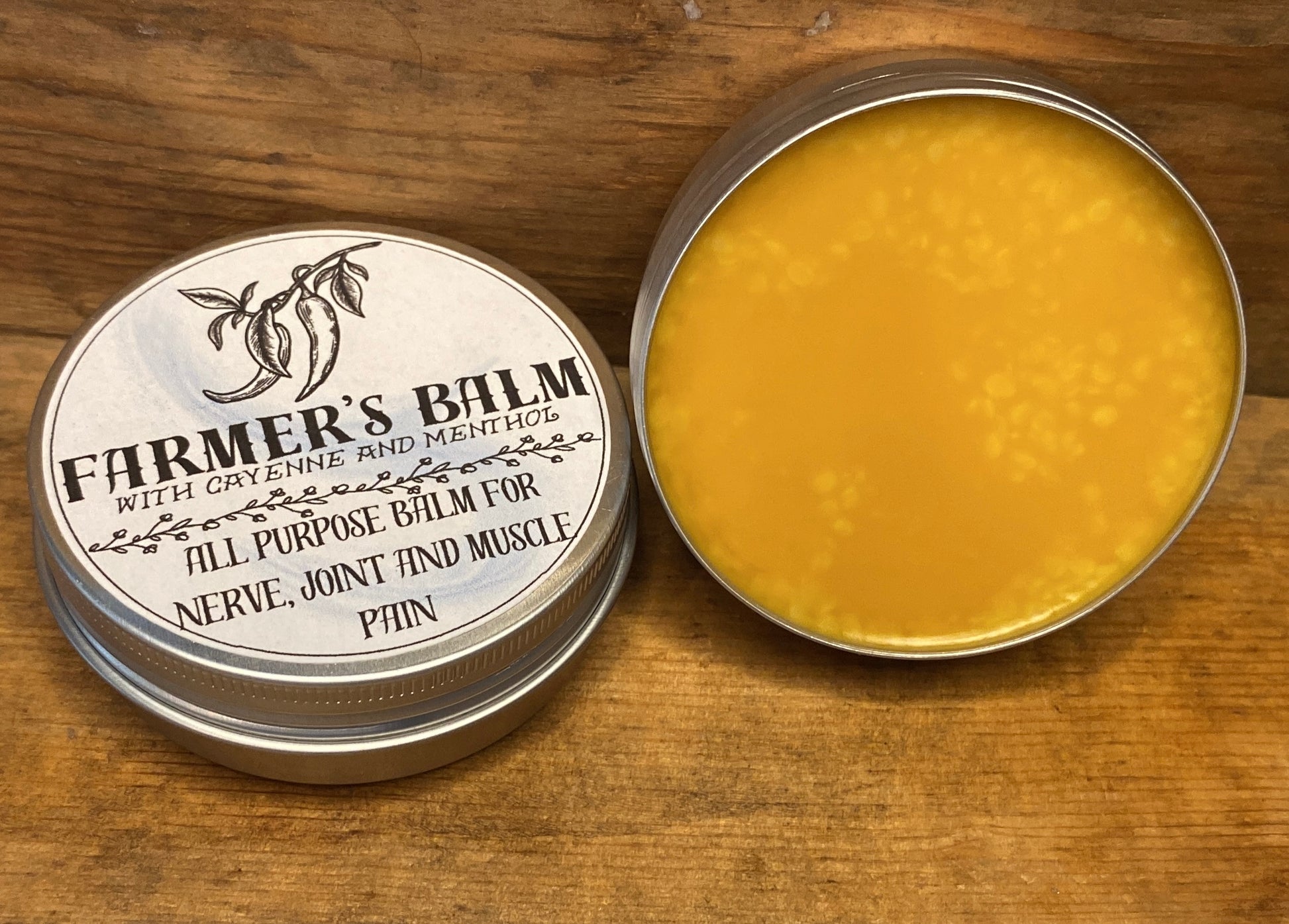 Did you know capsaicin, the primary natural chemical in chiles has excellent medicinal properties? From anti-inflammatory to increased circulation, this plant has been used by natural healers for centuries. Our Farmer's Balm will gently warm and soothe tired muscles. Cayenne pepper creates a mild warming sensation to ease tension and stiffness, while menthol and beneficial essential oils combine to cool and soothe. Use after bathing for best results. Do not use near eyes or other mucous membranes. Discontinue use if redness, sensitivity to sunlight or itching occurs. DO not use in place of medical advice.